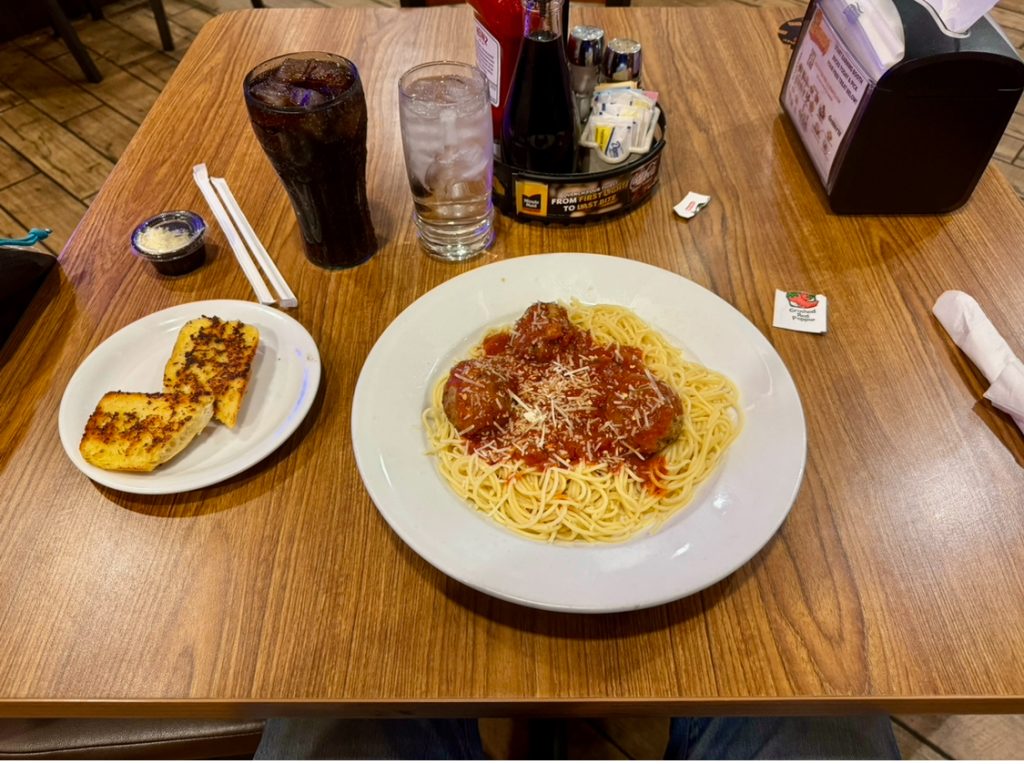 I arrived at the FJ at 22:30 because I had to stop for fuel and do my required DOT 30 minute break. I parked the truck and had spaghetti and meat balls for dinner, it was far from great but a change from fast-food hamburgers. My workday was 13.5 hours with 10 hours of drive time, as I was slowed down by traffic. I was tired and hungry.