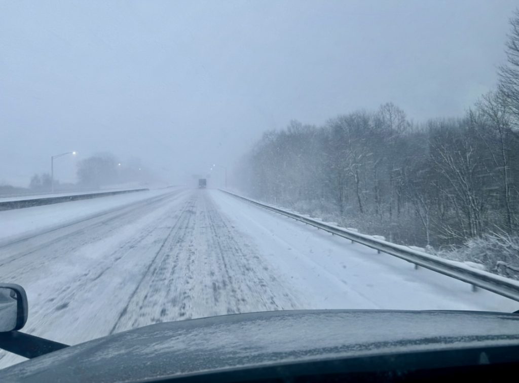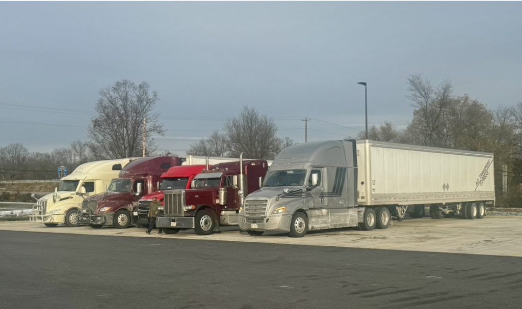 I was planning on leaving the terminal on Sunday the 14th somewhere between 10:00 and 13:00. The drive to the consignee required seven hours and there’s a good Middle Eastern restaurant in Breezewood, PA six hours away. If I left early enough I good have dinner there and then spend the night at a truck stop just minutes from the consignee. I ended up leaving at 13:00 so I planned on spending the night at Breezewood and have dinner there. There was a snow storm in the forecast but it wasn’t snowing in Canton, MI so I figured the roads would be fine. I was wrong. Driving through Ohio the weather changed and it started snowing slowing down traffic. By the time I reached Breezewood I was behind schedule by an hour-and-half and the restaurant would be closing soon. I decided to push on but now my DOT Regulation 8-hour clock was a factor. I decided to shut it down for the night at a Sheetz in Williamsport, MD as my clock was winding down to nothing. I was only 15 minutes from the consignee so I could do a Split and deliver on time at 07:00 or do the full DOT Regulation 10-hour break and deliver at 08:00. I called the AD Dispatch and they instructed me to take the full ten-hour break.