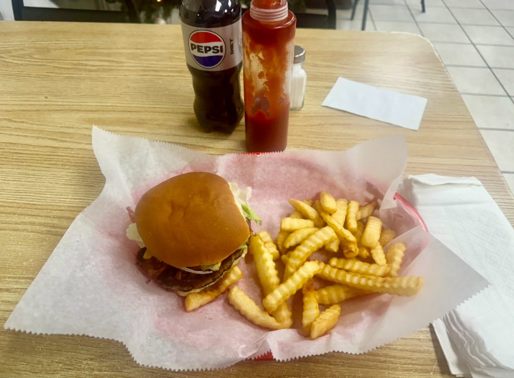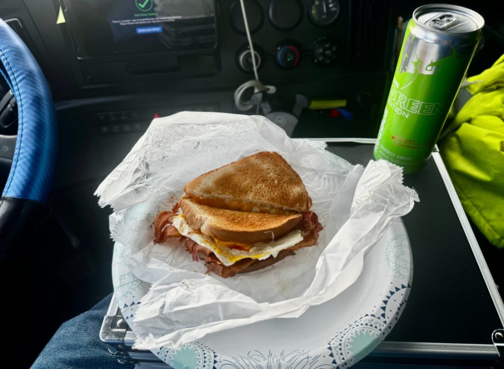 The load was due on Friday but I would be able to make it on Thursday. Unfortunately, I ended up leaving the shipper at 14:30. The trip should be able to be done in ten hours, but it took me twelve due to the hilly terrain and road work. The route entails traveling on the section of I-40 that was damaged by Hurricane Helene and that portion is one lane restricted to reduced speed. I decided to shut down at 21:30 on Wednesday though I still had enough drive hours to continue. Three things factored in: 1) The DOT Regulations convert an assignment into a zero-sum game. The more I drive on one day implies a latter start the next day. 2) The DOT 8-Hour Regulation requires that I take a 30 minute continuous break in order to drive the full eleven hours maximum, so if stopped for the night before the eighth hour I could surpass it. 3) The truck was at full length making it harder to maneuver into parking spots. The latter I drove the less easy parking availabilities. I decided to shut it down at 49er Truck Stop after driving non-stop for seven hours. It’s a mom-and-pop truck stop that I know well and normally has abundance of parking. They also have a 24/7 diner and I was hungry.