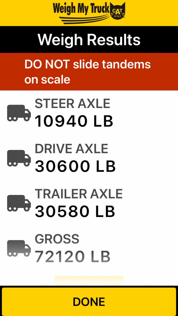 Tuesday 01/20 I started my day at 10:00 and had a 103 mile drive to the outskirts of Baltimore that took me two hours to get there. It took about an hour to load the truck with sheets of plywood. The BOL indicated to weight close to 40,000lbs so I had to scale it to make sure I was not over the legal limit and both axles were compliant as well. I needed to add fuel and was given a Pilot in Hagerstown, MD, so I would scale it there too. I know that truck stop and it has a McDonalds but parking can be tricky. When I arrived at the Pilot I spotted an easy parking space and I decided to go in head first to save time and not deal with excessive maneuvering. I went inside for a Big Mac meal. Afterwards I fueled and then scaled the load. The truck scaled out at 72,120lbs with the weight perfectly distributed between the axles.