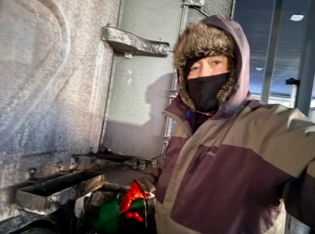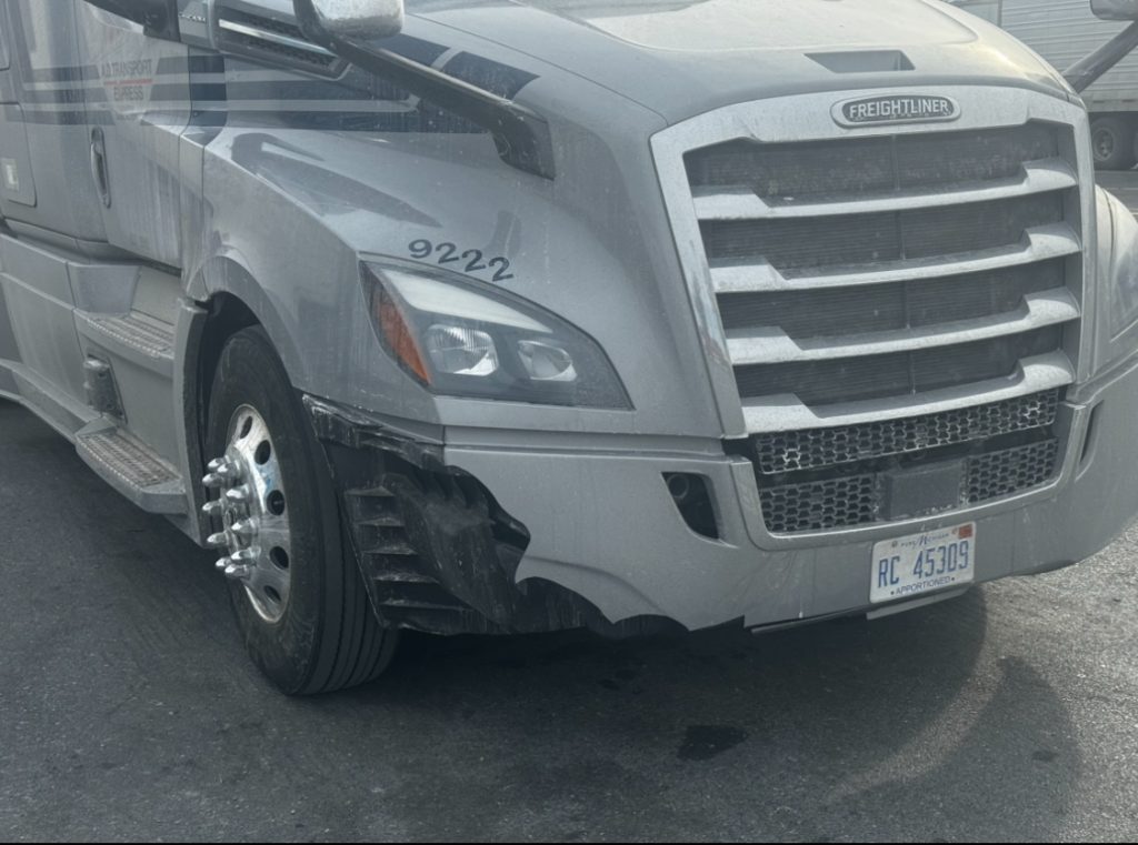 I arrived at the shipper at 10:00 and was ready to go by noon. I had refueled the day before after going to Walmart at our terminal. I drove eight hours that day and shut it down at 21:00. The roads were icy and at some point I must had clipped the icy snow pushed to the side of the road by the plows because the next morning I noticed the right side of my front bumper had been torn off.